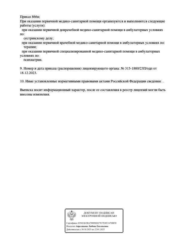 Без лицензии клиника не несёт юридической ответственности за результат лечения. Проверяйте документы перед обращением.